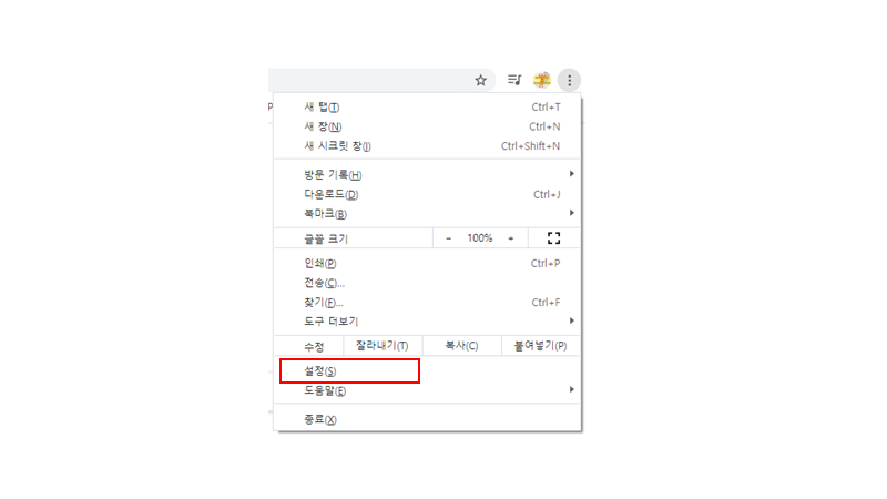 우선 크롬 브라우저에 설정 부분을 클릭한다.